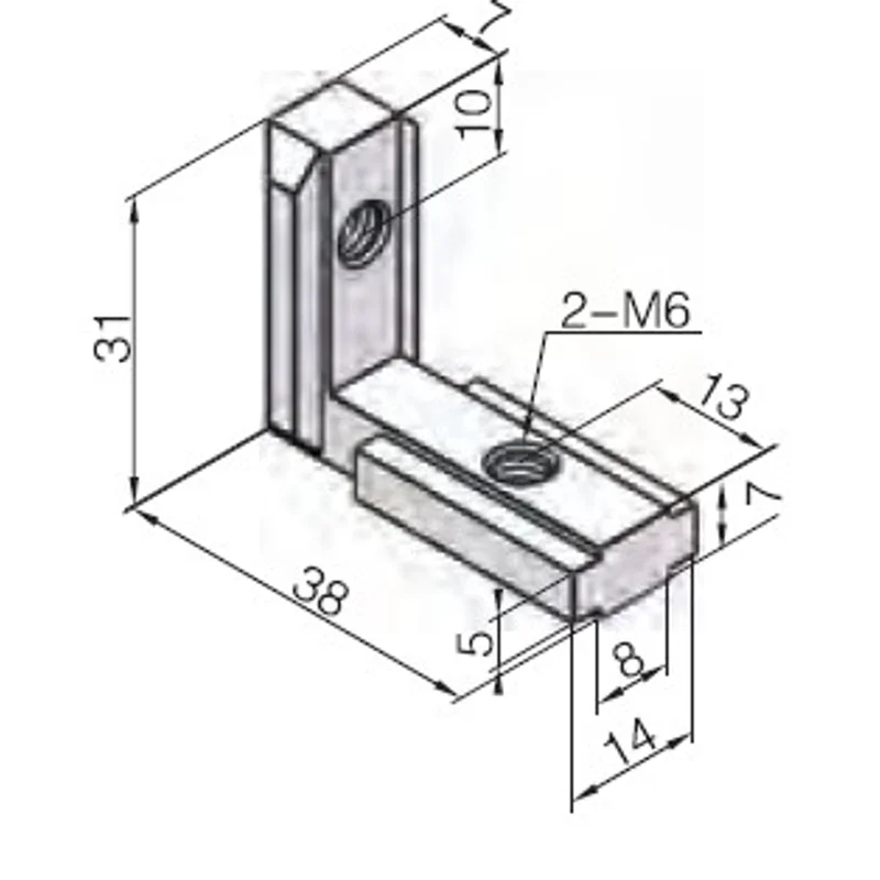 90 degree internal connector for 30 series aluminium profiles.
